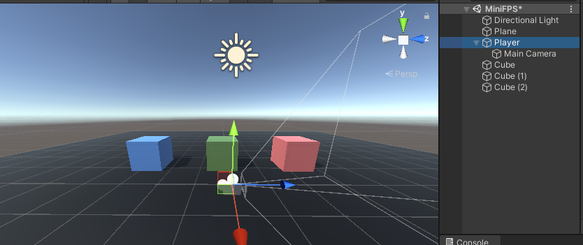 Hierarchy의 Main Camera객체를 Player객체로 드래그 앤 드롭 해, 부모객체 Player의 자식객체 Main Camera가 되도록 한다.