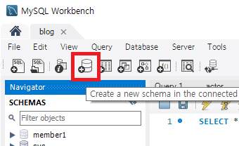 새로운 스키마 (SCHEMAS) 생성을 위해, 상단의 데이터베이스 모양의 버튼을 클릭한다.
