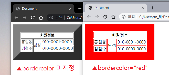 ㆍ사용 예시표 테두리 색상을 지정할 수 있다.
