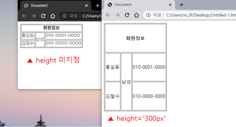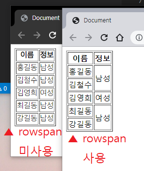 | rowspan | n개의 행을 하나의 행으로 병합한다. | |
