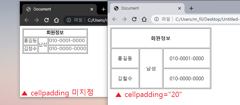 | cellpading | 셀 데이터값과 테두리 사이의 여백 | |