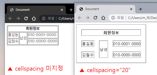 | cellspacing | 셀과 셀 사이의 여백 | |
