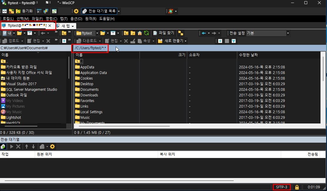 외부 PC에서 OpenSSH 서비스를 실행 중인 로컬 PC로 SSH, SFTP 접속이 가능한지 확인해보도록 하자.