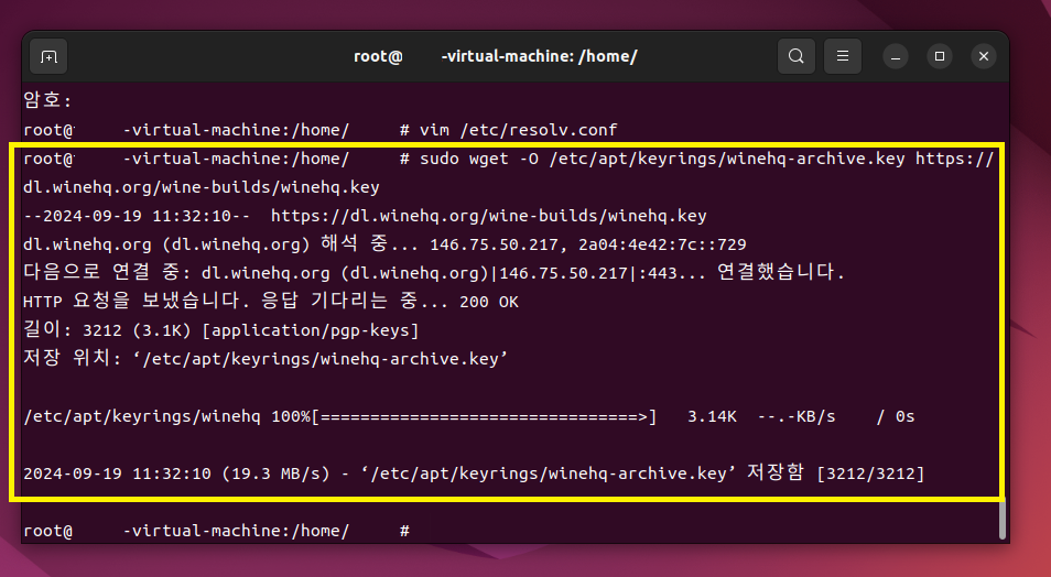 LINUX에서 wget 명령어를 통해 WINE 저장소에서 관련 정보를 내려받으려고 시도했으나, 터미널에서 실패: name resolution에서 일시적인 실패. 에러가 출력되며 작동하지 않는다. 해당 오류를 해결 해 보도록 한다.