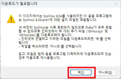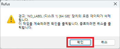 확인 버튼을 클릭하여 부팅 디스크를 제작한다.