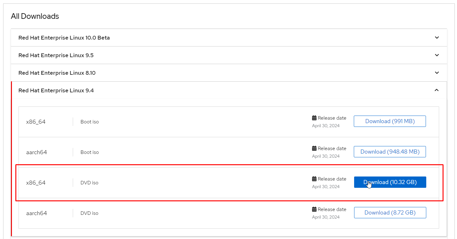 ▲ RHEL 공식 다운로드 페이지