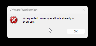VMWare 을 사용 중, 가상 머신의 전원을 제어하려고 하는데, 상기와 같은 오류가 출력되는 경우가 발생한다. 위와 같은 오류를 해결해보도록 한다.