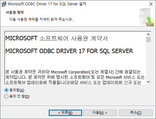 내려받은 MSSQL의 ODBC 드라이버 설치 파일을 실행한다.