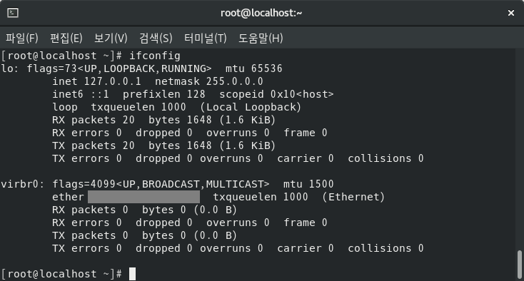 그 다음으로 네트워크 인터페이스 정보 확인을 시도하였으나... 네트워크 인터페이스가 아무것도 출력되지 않는다. 무언가 문제가 있다는 것을 알 수 있다.