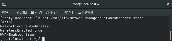 NetworkingEnabled=true 는 nmcli networking on 상태와 같다.