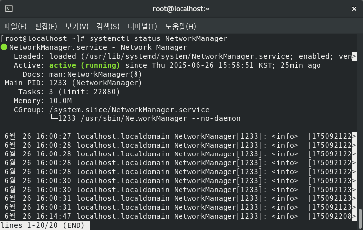 1.1 NetworkManger 서비스 상태 확인