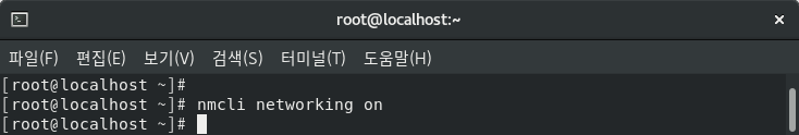 nmcli networking이 [OFF] 상태일 경우 NetworkManager 서비스 데몬이 실행 중이더라도 실제 네트워크 연결을 활성화 할 수 없게 되어 네트워크 통신이 불가능해 지게 된다.